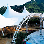 膜結構中所使用的膜材料每平方壹公斤左右,由于自重輕,加上鋼索、鋼結構高強度材料的采用,與受力體系簡潔合理——力大部分以軸力傳遞,故使膜結構適合跨越大空間而形成開闊的無柱大跨度結構體系。